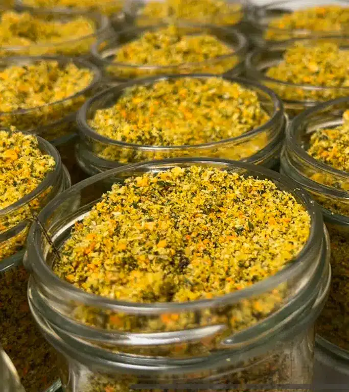 2°) Nous transformons ces ingrédients artisanalement en épices, condiments aromatiques et aides culinaires séchés originaux, sains, ultra pratiques et 100% français.